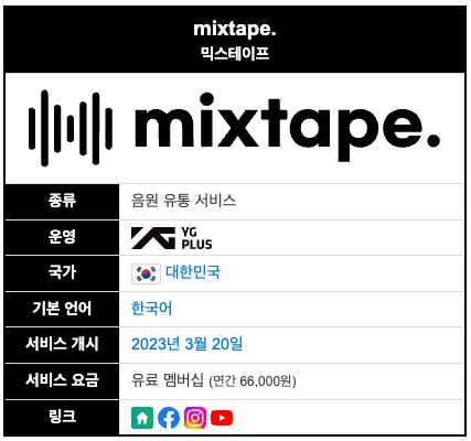 하지만 믹스테이프는 YG PLUS에서 직접 운영하고 있고, KOSPI 상장사라 다른 군소 유통사 대비 폐업할 확률도 매우 적습니다.